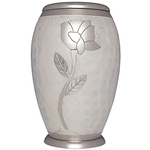- Product Name: Funeral Urn by Liliane - Cremation Urn for Human or Pet Ashes - Hand Made in Brass & Hand Engraved - Display Urn at Home or in Niche at Columbarium -Talia Model (White Enamel with Silver Flower,Adult)